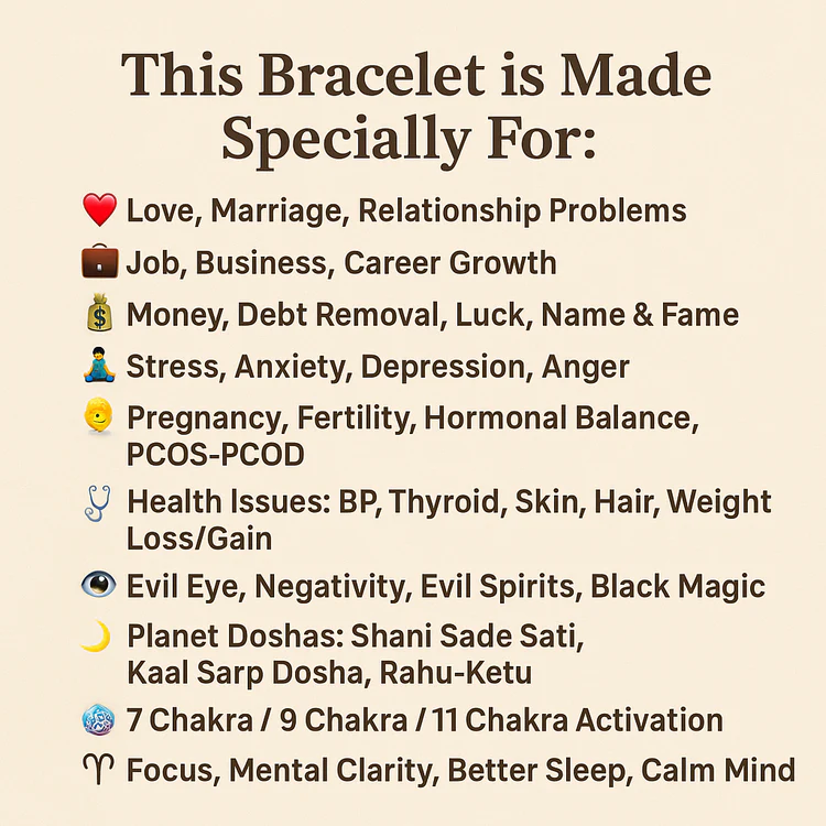 This personalized bracelet brings balance, attracts positivity, and helps you overcome challenges in life. It is Abhimantrit by Swami Vipin Vayas with sacred Vedic mantras to ensure maximum spiritual benefits.
